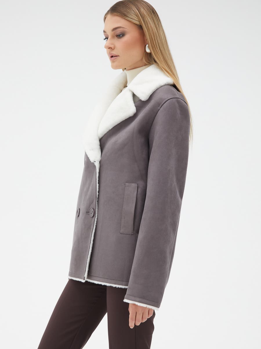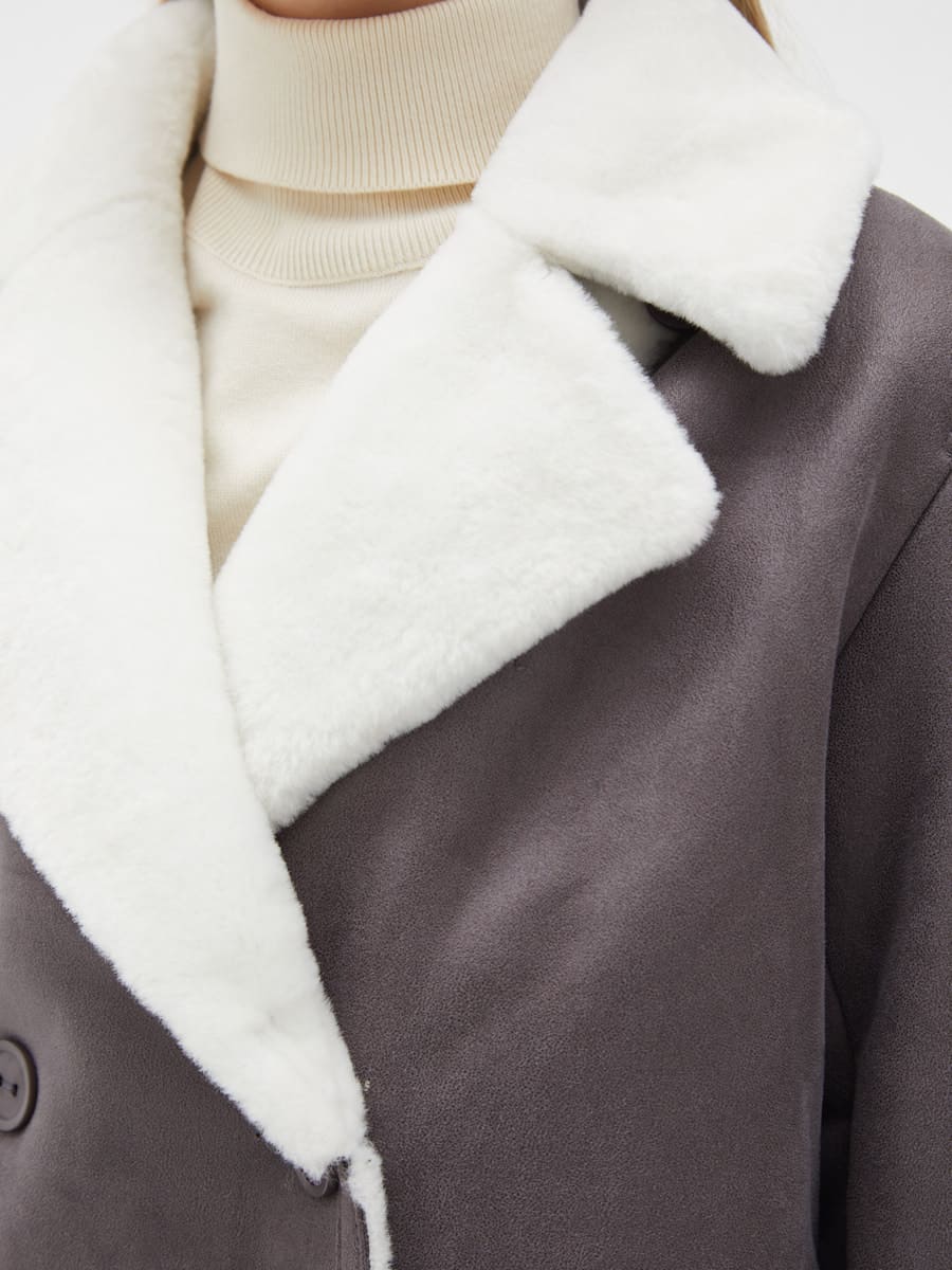 Вид ворота - английский воротник, отделка эко мех