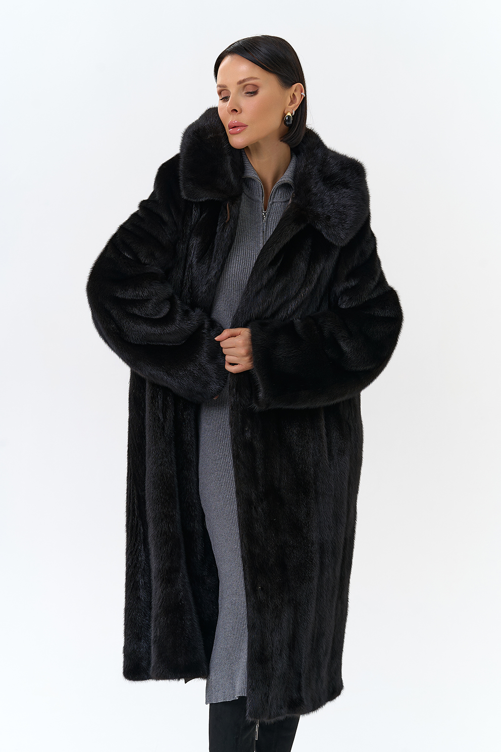 Шуба из норки с капюшоном